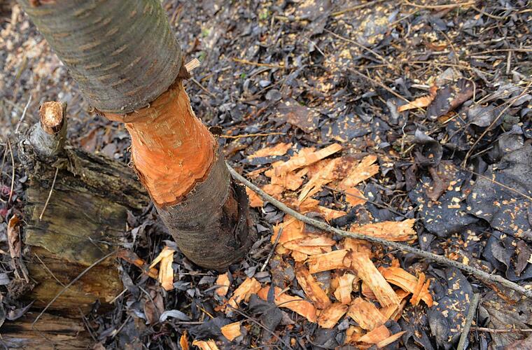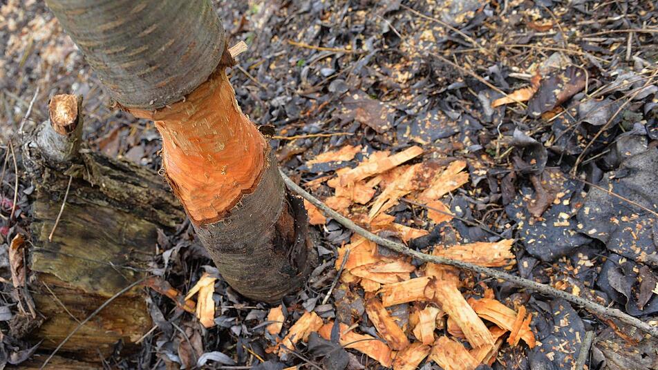 Im Herbst und Winter dagegen bevorzugt von der Rinde von Weichholz, wie Stahl weiter erklärt. Dabei verwerten sie den gefällten Stamm komplett: "Der Biber schält den Stamm ab, frisst die Rinde und verwendet das Holz später für den Bau."