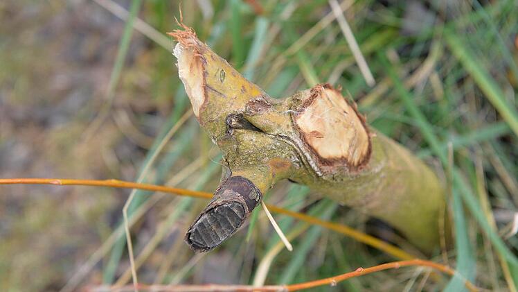 Allerdings: Nach dem regelmäßigen Festmahl der Biber bleibt von den Bäumen und Sträuchern nicht mehr übrig als ein Stumpf. Die Tiere nagen, bis am Stamm des Baumes oder Strauches die typische "Sanduhr"-Form entsteht - und dann knickt der Baum um.