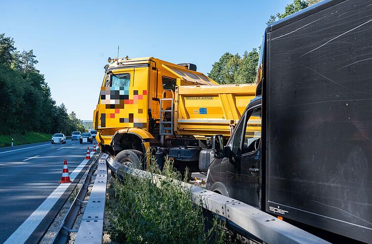 Vor der Fahrbahneinengung kam es zu zähfließendem Verkehr. Das erkannte der 59-Jährige aus bislang ungeklärten Gründen "überhaupt nicht", so die Polizei, und fuhr auf einen langsam fahrenden Sattelzug völlig ungebremst auf. Durch die Wucht des Aufpralls geriet der 59-jährige Lkw-Fahrer auf den linken Fahrstreifen und prallte noch gegen einen dort fahrenden Kleintransporter.