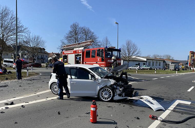 Dieses Auto wurde durch den Aufprall so stark deformiert, dass die 34 Jahre alte Fahrerin eingeklemmt wurde und von den Einsatzkräften der Freiwilligen Feuerwehren aus Viereth und Trunstadt befreit werden musste.