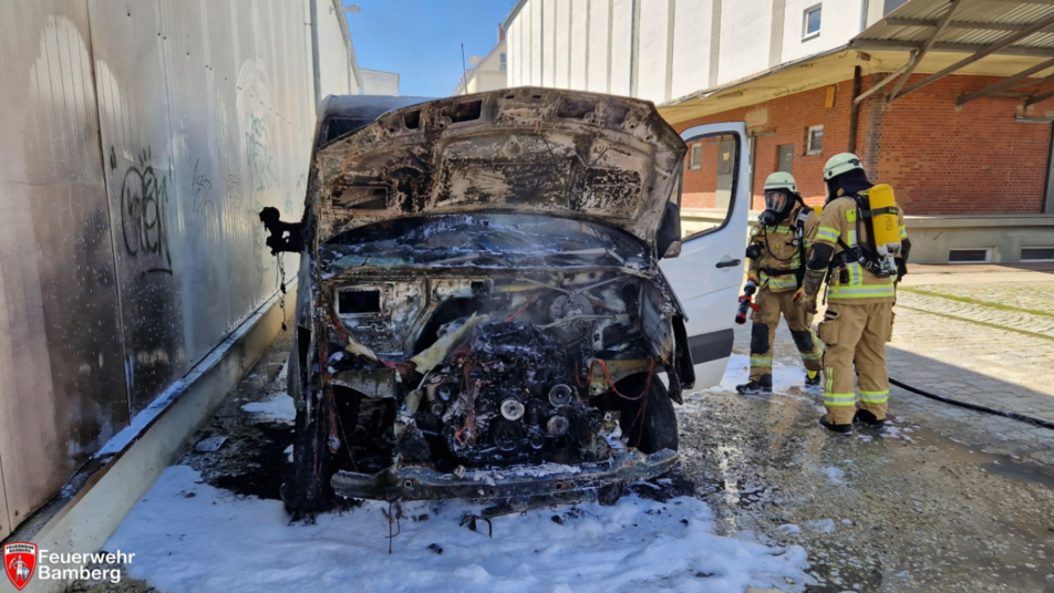 "In einer Seitenstraße zur Geisfelder Straße brannte der Motorraum eines Lieferwagens in voller Ausdehnung", heißt es in einem Einsatzbericht. Personen befanden sich demnach nicht in Gefahr.