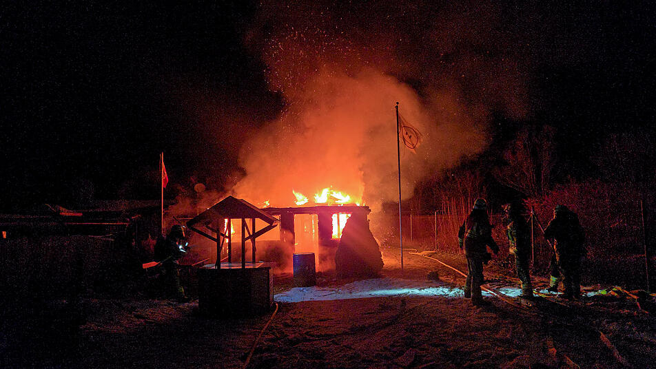 Beim Eintreffen der Einsatzkräfte brannte die rund 50 Quadratmeter große Gartenhütte bereits vollständig. Die Feuerwehr leitete umgehend die Löscharbeiten ein und brachte das Feuer unter Kontrolle.