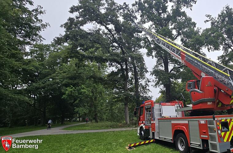 Die Kräfte wurden benötigt, nachdem dort von einem Baum mehrere Äste abgebrochen waren. Diese fielen auf den Boden und verfehlten dabei nur knapp Passanten, erklärt die Feuerwehr Bamberg in einem Einsatzbericht.