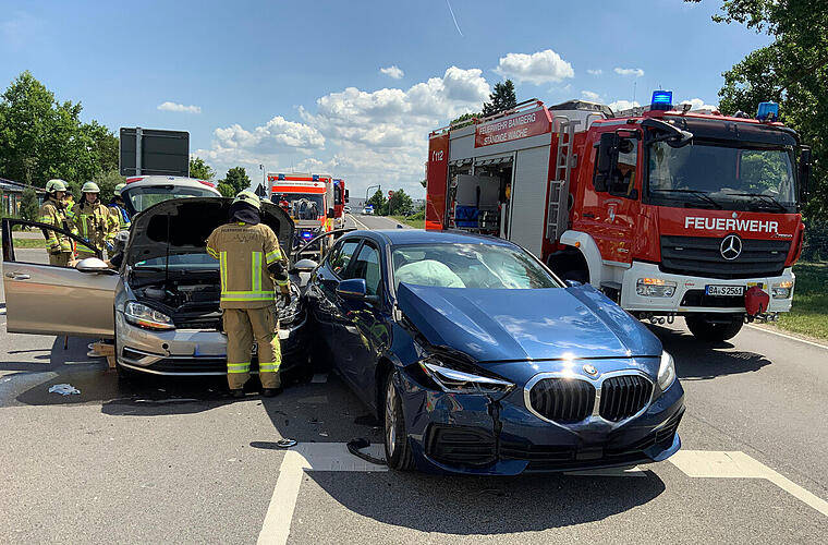 Unfall auf der B26 in Bamberg - mehrere Personen kommen nicht mehr aus Auto