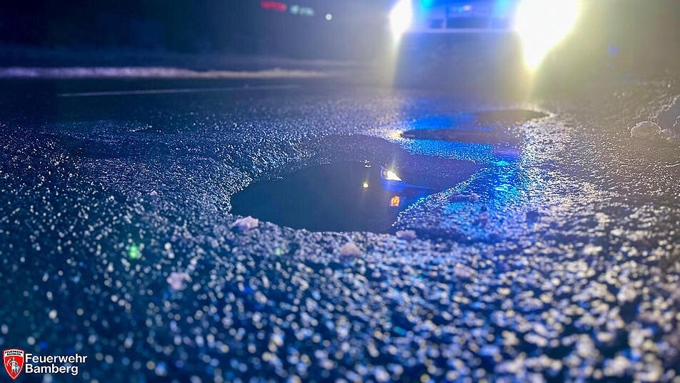 Ein jähes Schlagloch sorgte in Bamberg für einen Feuerwehreinsatz. Die Kräfte sicherten die Stelle und leiteten den Verkehr vorbei.