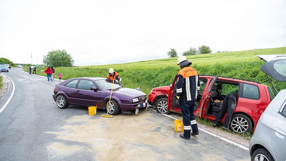 Zwischen Steinsdorf und Walsdorf im Kreis Bamberg kam es am späten Dienstagnachmittag nach einem gewagten Überholmanöver zu einem schweren Frontal-Zusammenstoß. Drei Personen wurden leicht verletzt - darunter eine schwangere 27-Jährige und ein dreijähriges Kind.
