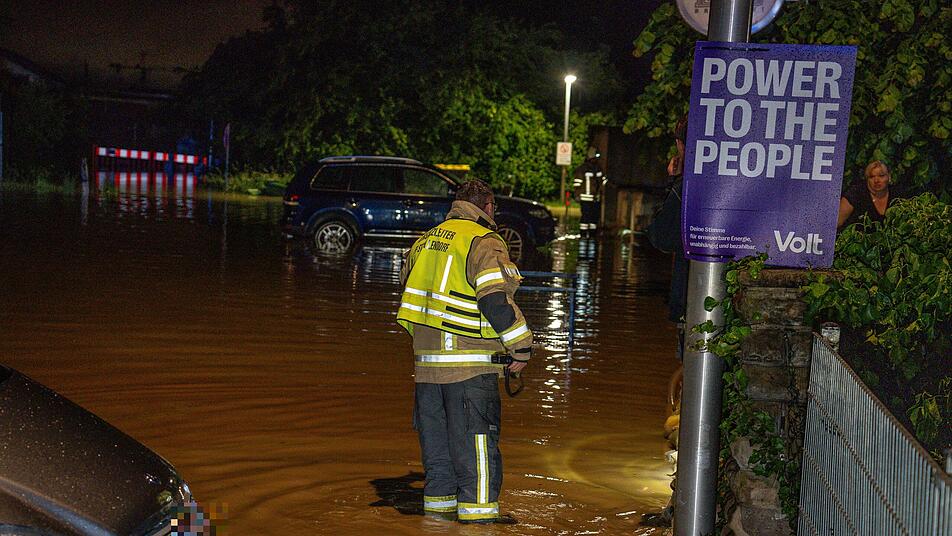 Hochwasser: Feuerwehr muss Passagiere aus Strullendorfer Bahnunterführung retten - Ölsperre im Zeegenbach