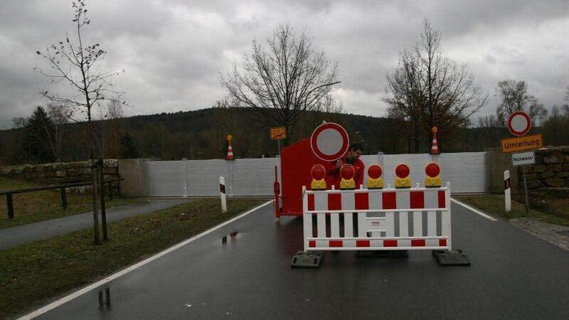 Die Ebinger Feuerwehr hat in der Nacht zum Freitag Sandsäcke befüllt und die Spundwand quer zur Kreisstraße, die zur B 173 führt, geschlossen.