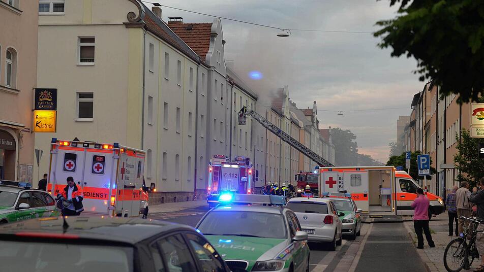 Sirenen, Rauch, Straßensperren: Gegen 21 Uhr ist in einem Mehrfamilienhaus in der Zollnerstraße ein Feuer ausgebrochen. Zwei junge Männer musste die Feuerwehr mit der Drehleiter retten.