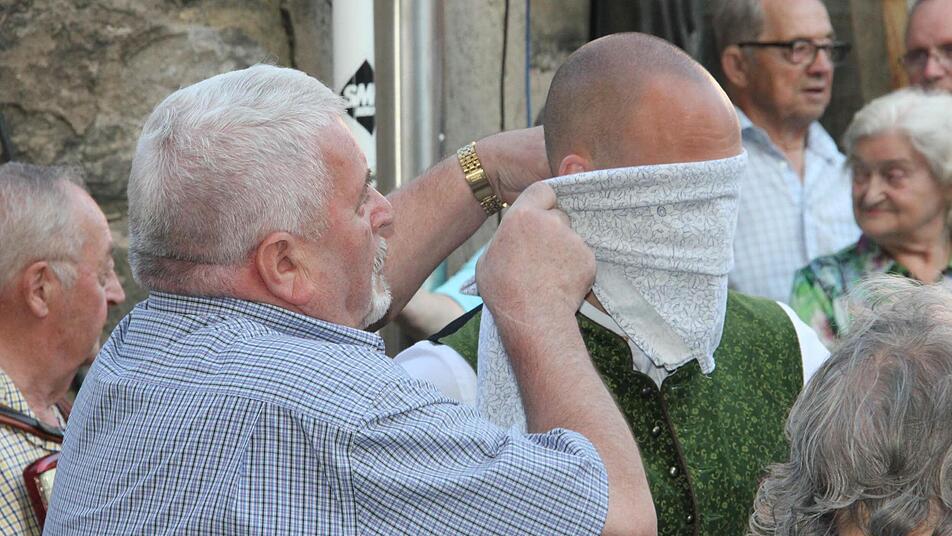Rekordverdächtig: Um 18 Uhr hat am Montag der traditionelle Hahnenschlag an der Sandkerwa begonnen. Zehn Minuten später war vor der Kirche St. Elisabeth schon wieder alles rum: "Das gab es vielleicht einmal bisher", schätzte Edelgard Koch nach dem "Blitz"-Hahnenschlag und schmunzelte: "Sie wollte mich nur schonen, weil ich heiser bin." Die Bürgermeisterin der "Sand G'ma", die am Montag schlecht bei Stimme war, meinte damit Gisela Bosch. Ihr gelang es in diesem Jahr, den Tontopf mit dem Dreschflegel zu treffen. Wohl gemerkt mit verbundenen Augen - so sehen es die Spielregeln vor.