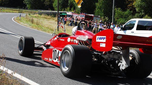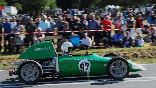 Der Aufmarsch der historischen Renn-Gladiatoren begann klein mit einem BMW 700 Coupe (aus 1963) des Wunsiedlers Florian Engel und reichte über einen der äußerst seltenen Melkus-Rennwagen (1978) aus der ehemaligen DDR, einer Ford Escort RS Rennversion (1974), etlichen Porsches und einem Lombardi Grand Prix BMT (1970) bis hin zum Stenger Gruppe C (1990) des Bambergers Ralf Sauer und den beiden Formel-2-Rennern des Engländers Keith Harris (ein Chevron B 25 Formula 2 aus 1973) und des Kulmbachers Richard Feulner (ein Martini BMW aus 1980). Bei diesen Fahrzeugen wurde nicht nur den beiden Startern, sondern auch den Zuschauern ordentlich was auf die Ohren gegeben.