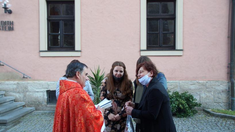 Nach dem Schlusssegen folgte der feierliche Auszug aus dem Gotteshaus. Eine geplante Agape musste wegen Corona verschoben werden. Einzelne Besucher und kleine Gruppen gratulierten Friedmann auf dem Kirchenvorplatz zu seinem Jubiläum.