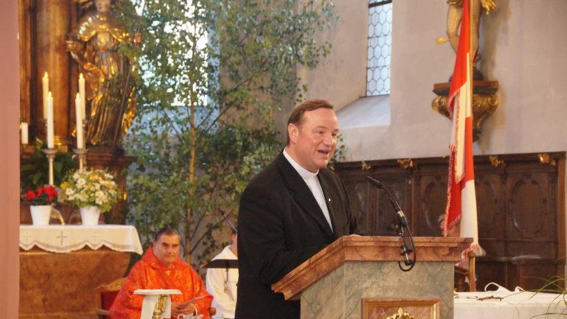 Auch Bogensberger verwies auf die vielen Bautätigkeiten des Pfarrers. Des Weiteren sagte er: "Wir freuen uns, dass Sie sich so engagiert einsetzen und dass Sie das Gemeindeleben durch das unermüdliche Abhalten von Gottesdiensten in unseren Pfarr- und Kuratiegemeinden, aber auch in allen Dorfkirchen aufrechterhalten." Auch hier zollten die Gläubigen kräftigen Beifall. Der Dank komme, so Bogensberger, von allen Kirchenverwaltungen, Pfarrgemeinderäten, Frauenbund Schönbrunn, KAB Burgebrach, Missionskreis, der Tafel Burgebrach und den Ministranten.