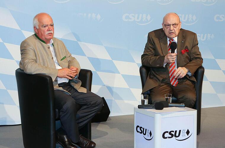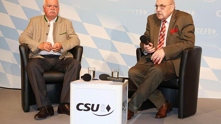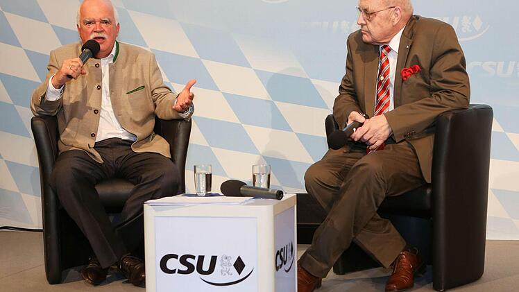 Der CSU-Politiker Peter Gauweiler und der Journalist Wilfried Scharnagl wollen in zehn Städten über den Freistaat reden und ihre Partei reden. Am Donnerstag machten sie in der Bamberger Konzerthalle Station.