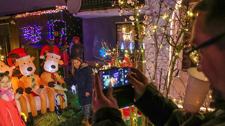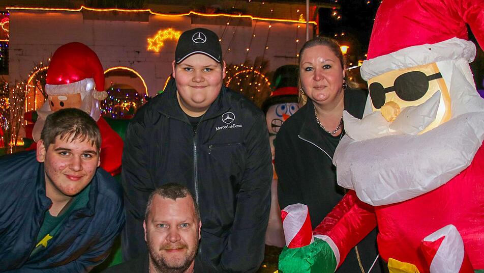 Die Playlist hat Sohn und DJ Jonas (14) mit Klassikern bestückt. Am Gartentor empfängt sein Bruder Leon die Gäste, die von München, Nürnberg oder Bad Staffelstein anreisen. "Heuer waren es schon über 450", berichtet der 15-Jährige. Seine Geschwister Fabian und Lea kredenzen Glühwein, Lebkuchen und Süßigkeiten, alles kostenlos. "Man kann eine Kleinigkeit spenden, wenn man will", sagt Papa Ralf. Oma Sylvia hat vor 17 Jahren den ersten leuchtenden Schlitten gekauft. So hat alles angefangen. Heute blinkt und flackert selbst der Schornstein.