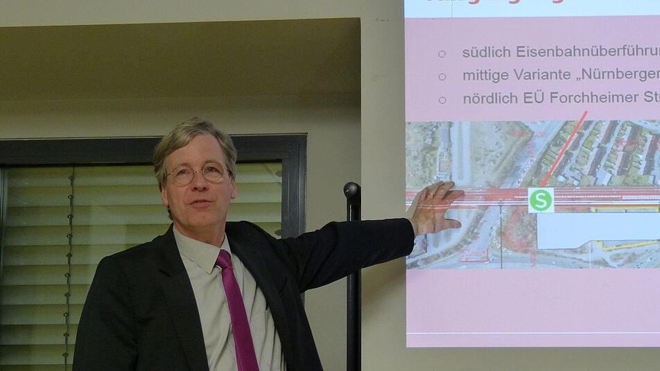 Die Interessenten an diesem Abend trieb aber nicht nur die Frage nach dem richtigen Weg um. "Bei der damaligen Betrachtung gab's die Handwerkskammer noch gar nicht und der Polizeistandort war auch noch nicht fix", schildert eine Frau im mittleren Alter die jetzige Lage. Das verlagere die Verkehrsströme. Da stelle sich die Frage, ob man nicht noch mal den S-Bahn-Halt nach Süden Richtung Forchheimer Straße verschieben könne. "Der S-Bahnhalt ist verkehrspolitisch sinnvoll, aber sollte jenseits der Forchheimer Straße realisiert werden", bestärkt Christian Hader, der für Grünes Bamberg antritt, die Idee.