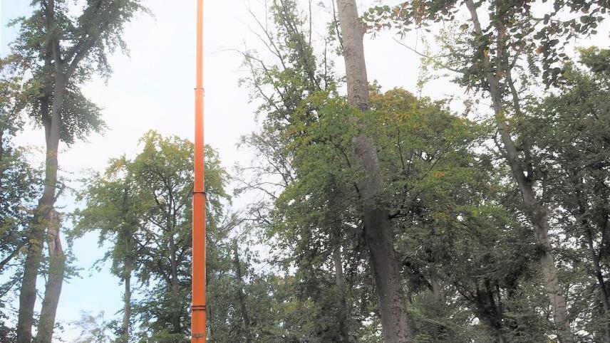 Auf exakt 32,5 Meter Höhe fährt der Hubsteiger im Bamberger Hain zwischen Hainbrücke und Bootshaus hoch und was sich von dort oben aus in seinem ganzen Ausmaß offenbart, ist nicht gut: Der Hain lichtet sich und das immer schneller. Wie die Stadt Bamberg mitteilt, tragen selbst Bäume, die vom Boden aus betrachtet noch recht grün aussehen, in der Baumkrone zum Teil nur noch tote Äste.