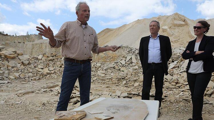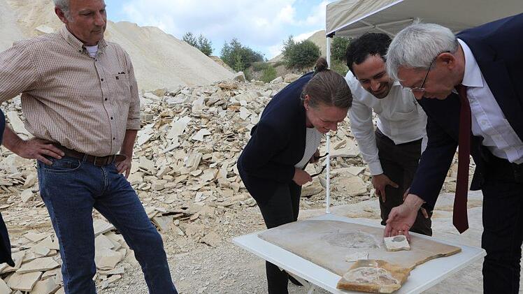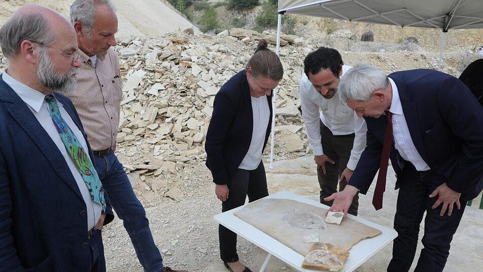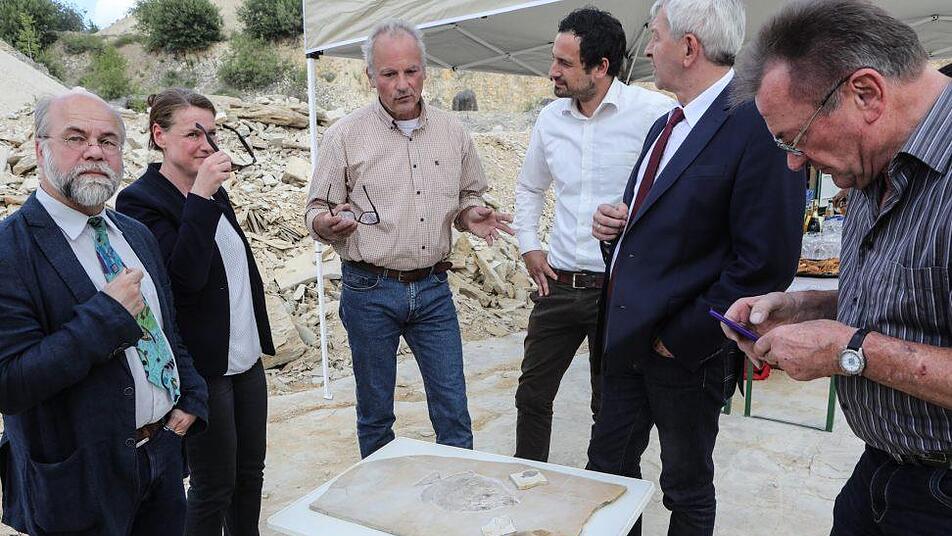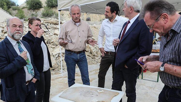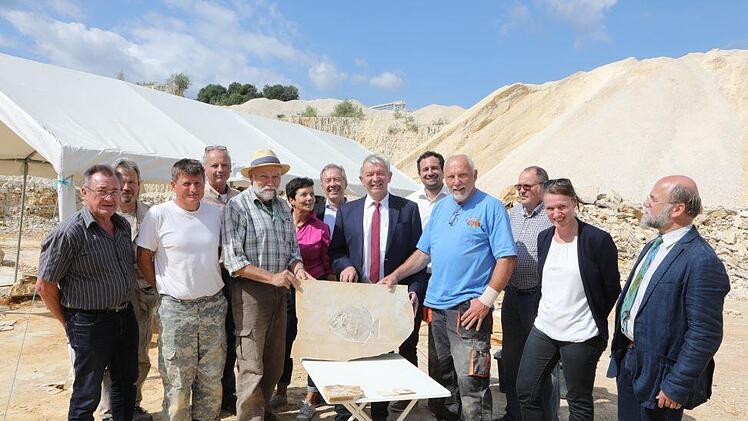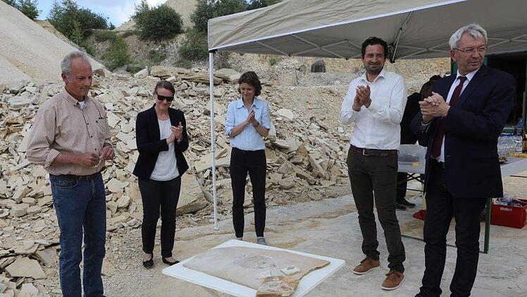 Ein besonders interessantes und wissenschaftlich wertvolles Fischfossil, das im Jahr 2017 von einem Team des Bamberger Naturkunde-Museums im Wattendorfer Steinbruch geborgen worden war, konnte zwischenzeitlich mit Mitteln des Fördervereins "Freunde des Naturkunde-Museums Bamberg e. V." präpariert werden. Das außergewöhnliche Fossil wurde am Dienstag in einem kleinen Festakt im Steinbruch im Beisein von Landrat Johann Kalb (CSU) dem Museum übergeben.