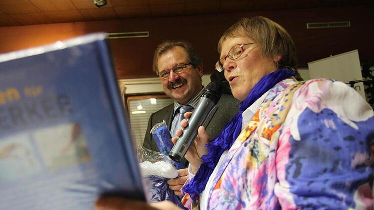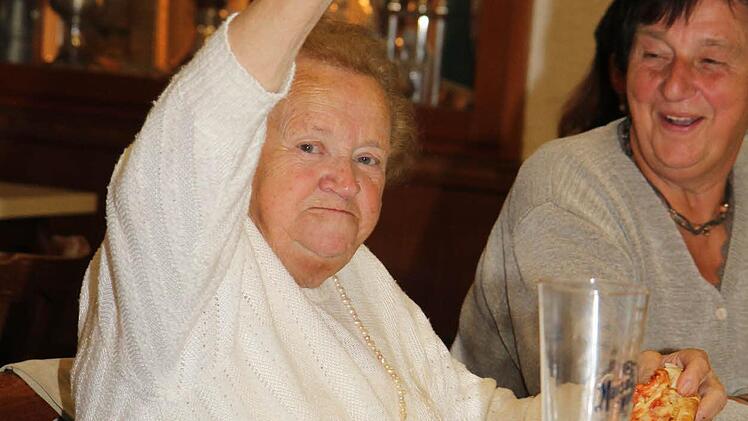 Die Landkreis-Redakteurin Anette Schreiber, die den Abend routiniert moderierte, sprang für die Fröschhofer in die Bresche und präsentierte deren Ortsschild. Überhaupt war sie an diesem Abend noch mehrfach gefordert und am Ende musste sie auch noch ordentlich Federn lassen. Einen "Publikumsliebling" hatte die Moderatorin auch bald gefunden: Hedwig Hofmann, eine resolute fast 79-jährige Schönbrunnerin, die dem FT erst einmal gehörig die Leviten las.