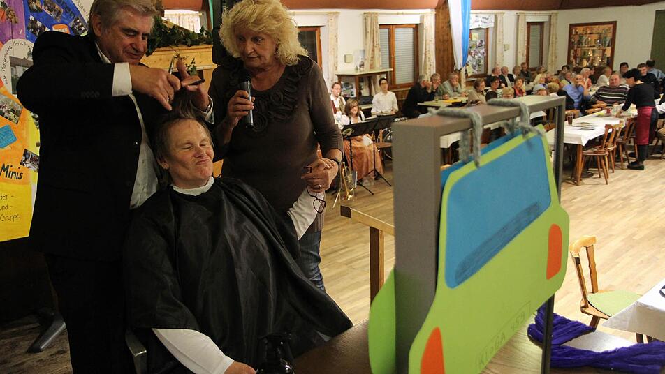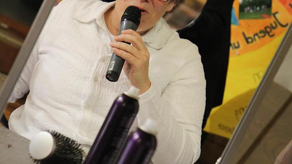 Anette Schreiber, Redakteurin und Moderatorin der FT-Veranstaltung im Schönbrunner Schützenhaus, gab sich an diesem Abend vertrauensvoll in die Hand von Meister Scharf. Ihre Antwort darauf, dass nur ein geringer Teil seiner Kundschaft aus der eigenen Gemeinde kommt. In nur 17 Minuten bekam die Moderatorin einen völlig neuen Kopf. Obwohl sie die Arbeit selbst nicht im Spiegel verfolgen wollte, war sie solchermaßen modisch gestylt am Ende mit dem Ergebnis sehr zufrieden.