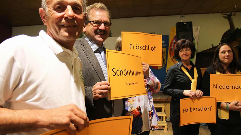 Sie haben's richtig krachen lassen, die Schönbrunner! Das ist durchaus wörtlich zu nehmen. Als der "FT vor Ort in Schönbrunn" war, um die Gemeinde im Steigerwald und das, was das Leben dort ausmacht, in den Fokus zu rücken, eröffneten Schlag 19 Uhr Böllerschützen die Veranstaltung im Schützenhaus. Das Kommando "Gebt Feuer" führte Thomas Wellein, der dazu nach alter Tradition seinen Säbel zu Hilfe nahm. Bis ins 14. Jahrhundert soll der Brauch mit dem Säbel zurückgehen. So was nennt man "Ehrensalut" und damit wird in der Regel der Besuch hoher Gäste angekündigt. Wir - das Team des Fränkischen Tags - fühlen uns solchermaßen geehrt und sind sogar ein bisschen stolz. Stolz auch darauf, dass das Schützenhaus mit mehr als 300 Besuchern aus Schönbrunn und seinen Ortsteilen Niederndorf, Oberneuses, Steinsdorf, Grub, Frenshof, Zettmannsdorf und Halbersdorf fast bis auf den letzten Platz gefüllt war. Lediglich aus Fröschhof war niemand gekommen, wie die Vorstellung der Gemeindeteile zeigte. Aber in diesem kleinsten Gemeindeteil leben derzeit auch nur zehn Personen, ließ Schönbrunns Bürgermeister Georg Hollet (Bürgerblock) wissen.