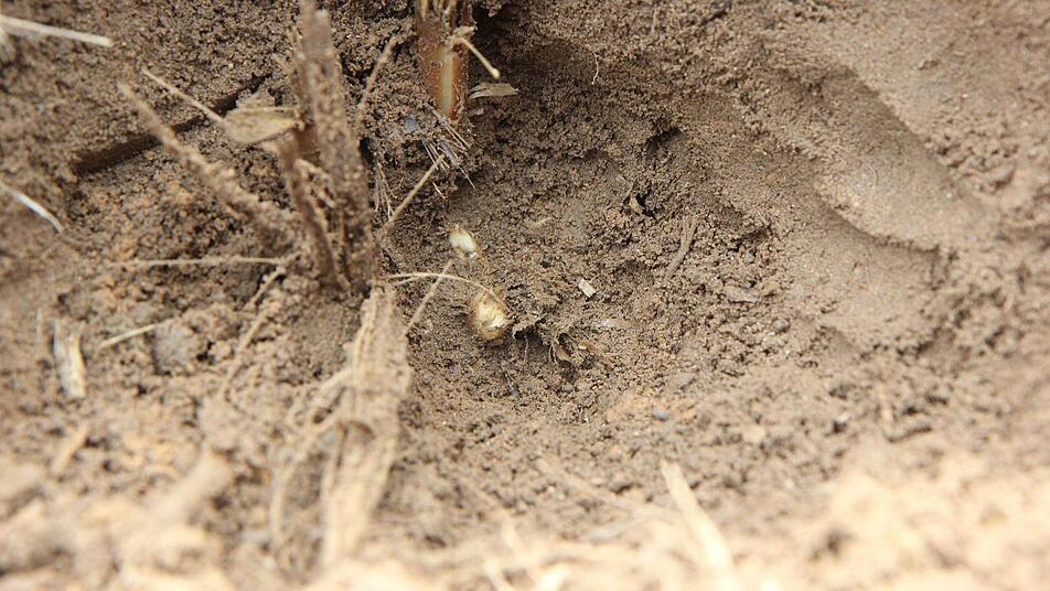 Davon ist das Gemüse aktuell allerdings noch weit entfernt. Letztes Jahr wurde die Spargelsaison in Hirschaid am 10. April eröffnet. Dieses Jahr hoffen die Erzeuger auf den 22. Wer momentan auf Spargel-Suche ist, muss noch tief in die Erde graben. Es dauert, bis Hans Ott eine kleine "Krone mit Knospen" findet. Er schätzt, dass der Spargel vielleicht einen Zentimeter groß ist.