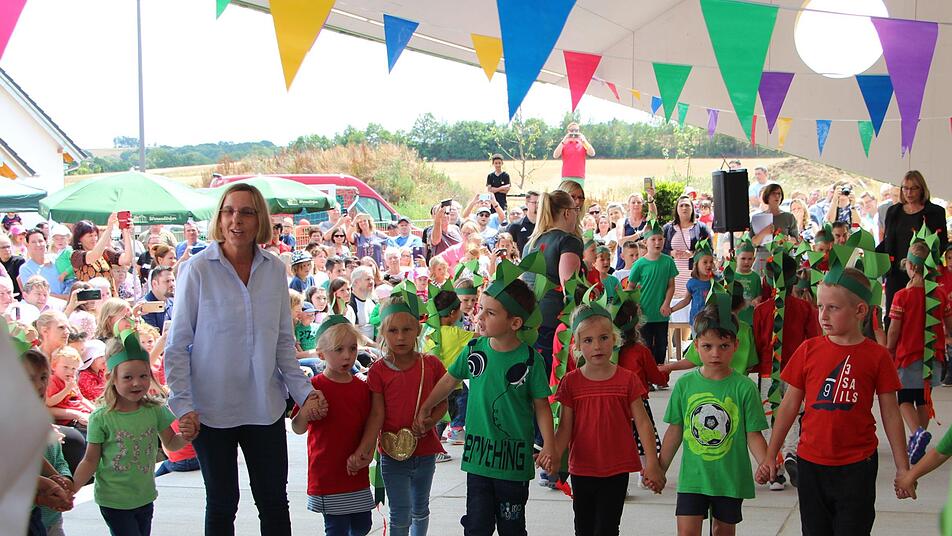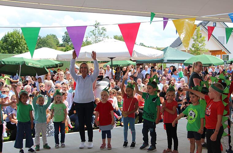 Ein großartiges Fest mit rund 1000 Besuchern feierte bei strahlendem Sonnenschein der Markt Burgebrach. Die neue Kindertagesstätte St. Otto wurde feierlich eingeweiht und allen Besuchern vorgestellt. Die als Drachen verkleideten Kinder begrüßten adie Gäste und brachten ihre Freude über ihr neues Haus mit einem Tanz und Gesang zum Ausdruck.