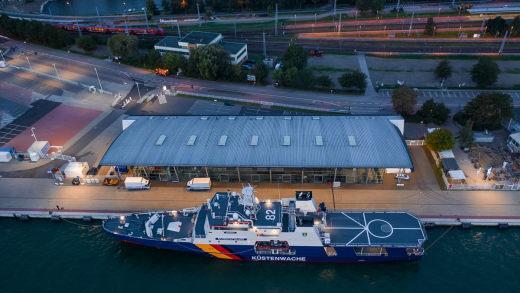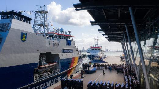 Das 86 Meter lange Hochseepatrouillenschiff "Bamberg" ist eines von drei neuen hochmodernen und umweltfreundlichen Einsatzschiffen der Bundespolizei. Sie verfügen unter anderem über ein Hubschrauber-Landedeck mit Platz für den größten Hubschrauber der Bundespolizei, zwei Einsatzschnellboote, Staumöglichkeiten für Container mit spezieller Missionsausstattung sowie über besondere Möglichkeiten, Spezialkräfte in den Einsatz zu bringen und zu schützen.