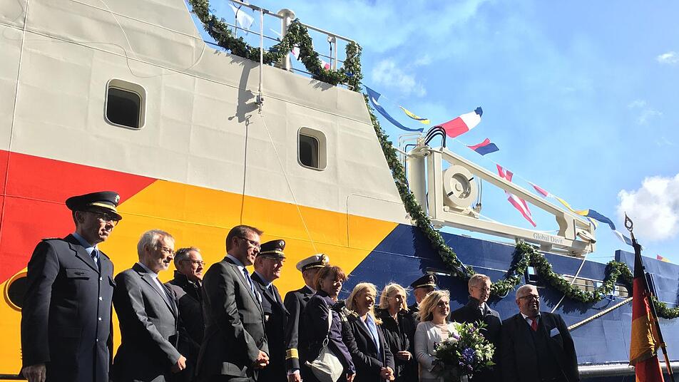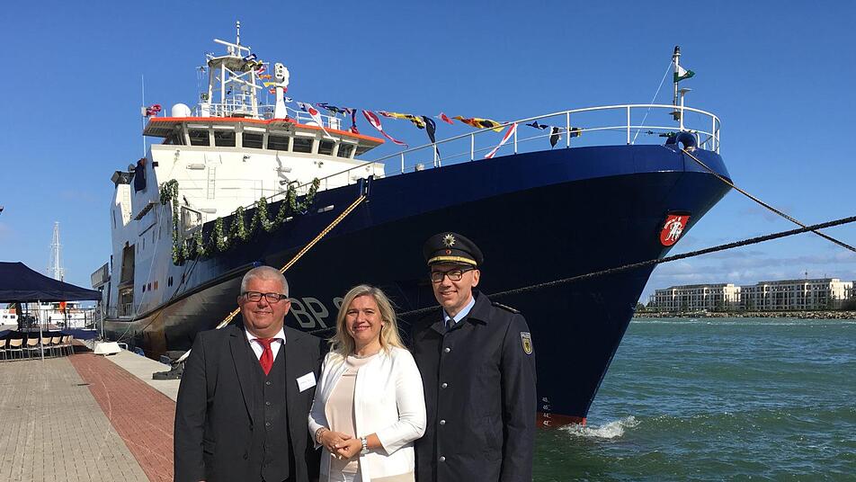 "Ich taufe dich auf den Namen ,Bamberg', wünsche dir allzeit gute Fahrt und stets eine Handbreit Wasser unter'm Kiel." Mit diesen Worten hat die bayerische Gesundheits- und Pflegeministerin Melanie Huml (CSU) das neue Einsatzschiff der Bundespolizei getauft und die Patenschaft dafür übernommen. Als Vertreter der Stadt Bamberg war Dritter Bürgermeister Wolfgang Metzner (SPD) bei der Schiffstaufe in Rostock-Warnemünde dabei.