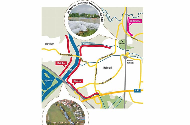 Die Stadt sollte jedenfalls auf ein solches Ereignis vorbereitet sein. "Hätte es so stark geregnet, wie der Deutsche Wetterdienst als Maximum prognostiziert hatte, hätten wir diese Marke erreicht", führt Pfister zum Hochwasser vor zwei Wochen aus. Hallstadt hätte damit ein gewaltiges Problem gehabt.