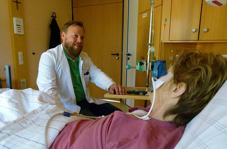 Chefarzt Jörg Cuno beantwortet diese Frage zunächst nicht. Er lässt eine schwerstkranke Patientin selbst zu Wort kommen: "Der Doktor könnte mir hier einen Cocktail hinstellen, ich würde ihn nicht nehmen. Selbst ein Ende machen, ist gegen die Natur", sagt Yvonne Bauer (Name von der Redaktion geändert) mit Nachdruck. Die 50-jährige Mutter zweier Kinder liegt entspannt und leicht aufgerichtet im Bett.