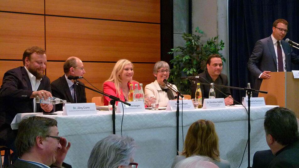 Mit Staatsministerin Melanie Huml diskutierten zwei Ärzte, eine Bischöfin und ein Jurist im Pfarrsaal von St. Heinrich über "Sterbehilfe". Und wie denkt eine schwerstkranke Patientin auf der Bamberger Palliativstation über den "Giftbecher"?