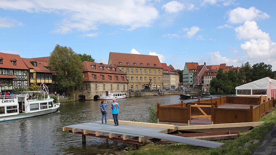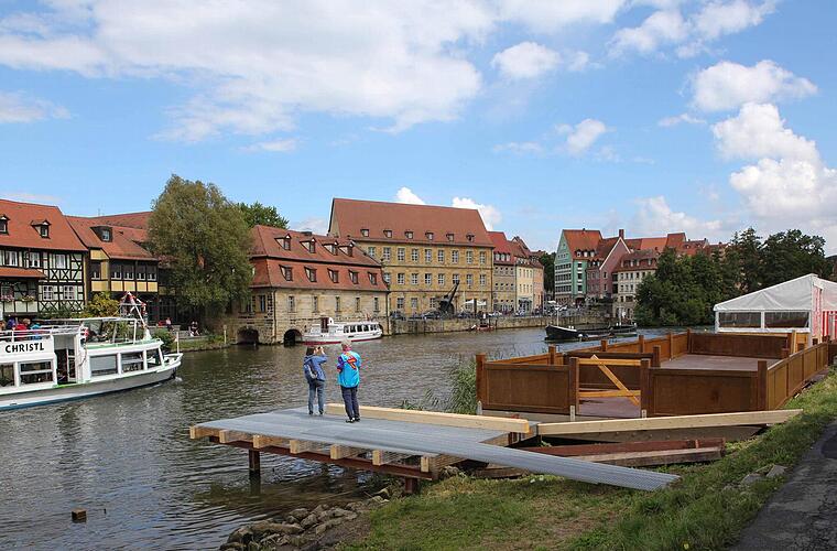 Die größte Erneuerung gibt es jedoch am Leinritt und zwar vor dem Festzelt. "Hier wurde eigens eine neue Wasserterrasse angeschafft. Diese wird sowohl als Freischankfläche für Zeltbesucher als auch für unsere Veranstaltungen wie dem Fischerstechen zum Einsatz kommen", schildert Ulrike Heucken, Geschäftsführerin der Sandkerwa Veranstaltungs GmbH. Zwar habe es bereits bisher eine kleine Außenfläche am Festzelt am Leinritt gegeben. Diese wurde nun aber um einige Meter erweitert und reicht nunmehr vor bis zum bisherigen Anlegesteg.