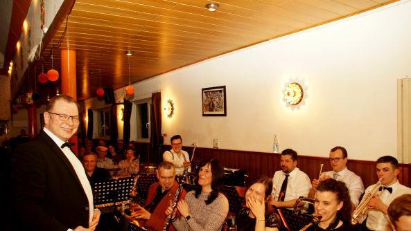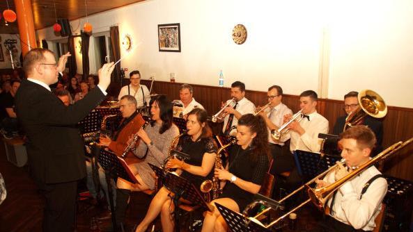 Zwischendurch spielte die bewährten Kapelle "Heimatklänge Ellertal" unter ihrem Dirigenten Tobias Mager immer wieder Schunkelrunden. An den beiden Abenden wählte eine Jury je drei Masken, die von den Scheßlitzer Geschäften gespendete Preise erhielten. Der von Bamberg nach Scheßlitz strafversetzte Dorfpolizist Claus Müller aus Reckendorf hatte im braven Schäätz wenig zu tun. Das deuteten seine Vorgesetzten aber, dass er sein Revier fest im Griff habe und gaben ihm seinen Leiterbach für die nächsten 25 Jahre.
