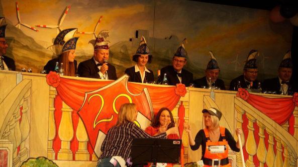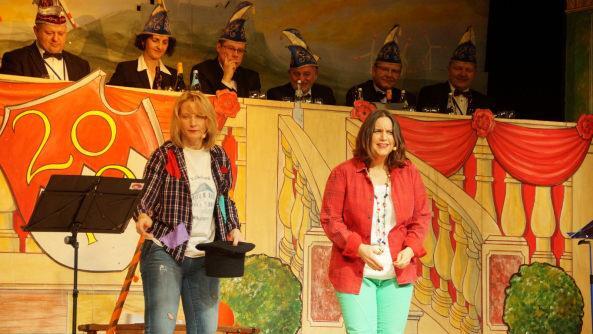 Mitfahrbänkla und Tatoostudio waren weitere Stationen. Dann aber bekam der Bürgermeister mit seinem Stadtrat sein Fett ab. Schuh-Mücke habe keinen Werkverkauf, der Putz bröckelt hinten und vorne vom Rathaus und die fehlende Frauenquote sind nur einige Punkte der Versager in der Politik, und Schuld daran seien die Männer, auch ihre eigenen zur Schande. Nach der Ballade über das Urgestein, die Bäckerei des Rothlaufs Heinz, stimmten dann aber beide versöhnlichere Töne an, dass man doch gerne in Scheßlitz unter seinem Bürgermeister Franz Zenk (so stand es noch im Mitteilungsblatt vom Dezember) lebe. Stehende Ovationen zeigten, dass das Herz der Schäätzer getroffen, beziehungsweise aus ihm gesprochen wurde.