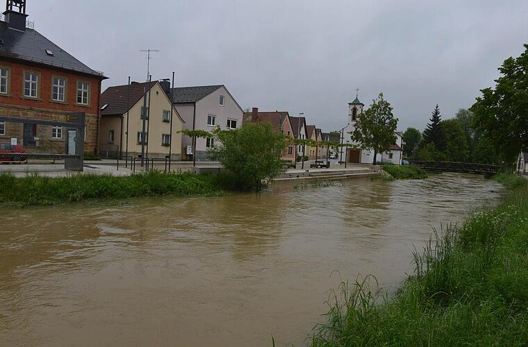 Steil angestiegen war vor allem die Regnitz am Pegel Pettstadt. Nachdem am Samstag morgen noch ein Wasserstand von etwa 3,80 Meter gemessen worden war, überschritt der Fluss am späten Sonntagvormittag die Fünf-Meter-Marke, verharrte dann aber knapp unter der zweithöchsten Meldestufe 3, die bei 5,10 Meter liegt. Vor allem die Rauhe Ebrach und die Aisch sorgten für Wassernachschub. Für die Rauhe Ebrach galt Meldestufe 3 am Pegel Vorra. Deutlich über der höchsten Meldestufe war der Pegel der Aisch im Landkreis Forchheim.