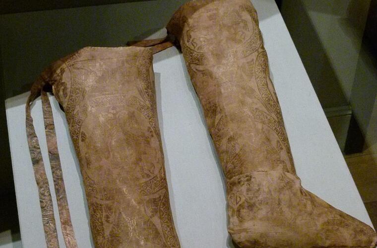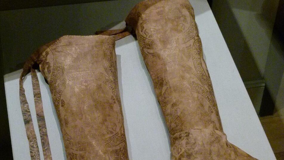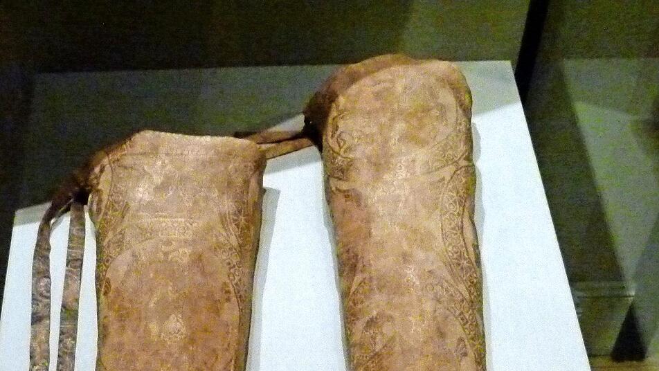 Das Gesamt-Ensemble steht in der Ausstellung im Zusammenhang mit den Grabbeigaben, die 1942 im Rahmen einer kriegsbedingten Kunstsicherung aus dem Clemensgrab entnommen wurden: die Pontifikalstrümpfe etwa aus der ersten Hälfte des 11. Jahrhunderts, die Stola oder zwei Palliumskreuze - und rotblonde Haare von Papst Clemens II.