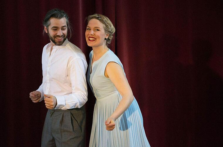 Mit ihrer Stepptanz-Theater-Collage schlagen von Hugo und Duhme den Bogen zwischen einst und heute. In Seniorenheimen von Auerbach, Coburg und Bayreuth fingen sie im Januar die Stimmen älterer Menschen ein, die den Krieg noch erlebten. "Was würden Sie tun, wenn Sie nochmal 20 wären?", war eine Frage, die die Künstler den Senioren stellten. Woran sie als Kinder, die mit den Verbrechen der NS-Zeit konfrontiert wurden, noch glauben konnten. "Eine Frau hätte gerne noch einmal ihre große Liebe wiedergetroffen. In jene Jahre aber wünschte sie sich nicht zurück", berichtet Michaela Duhme, die seit einiger Zeit in Bamberg lebt. Wie der Seniorin ging es anderen Befragten, die schlimme Erlebnisse zu verdrängen lernten. "Vieles gestanden sich diese Menschen offenbar nicht ein", so Alexander von Hugo. Auch die Schuld der Eltern, die hinter der Ideologie der NS-Zeit standen, blieb in den meisten Familien ein Tabu. "Und all die offenen Fragen, die Verunsicherung und Ängste, die sich daraus entwickelten, vererbten sich von Generation zu Generation weiter."