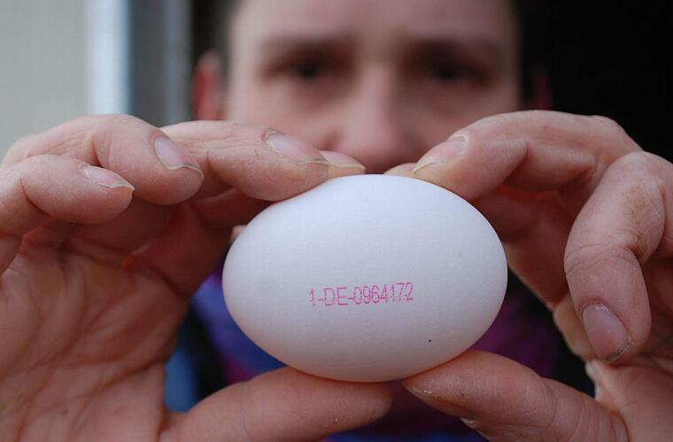 Michaela Rügheimer ist dem Preiskampf von Aldi, Lidl und Co. nicht schutzlos ausgeliefert, wo zehn Eier aktuell meist nur noch 99 Cent kosten. "Bei solchen Preisen könnten wir nie mithalten und wollen das auch gar nicht", sagt die Landwirtin, auf deren grüner Wiese sich um die 3000 Legehennen tummeln.