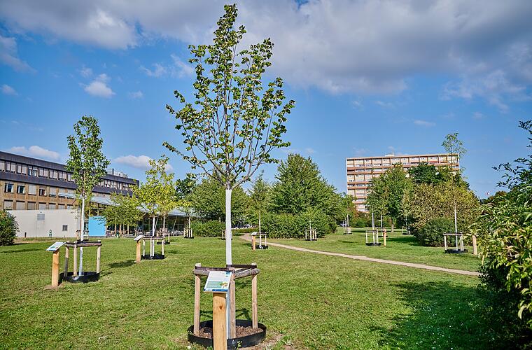 Heidelsteig/Klima-Arboretum: An der Heidelsteigfläche entstand ein Klima-Arboretum mit 25 klimaresilienten Bäumen, Lern- und Begegnungsangeboten sowie einer Vielzahl von Beteiligungsformaten und -projekten mit Schulen, Vereinen und Nachbarschaften.