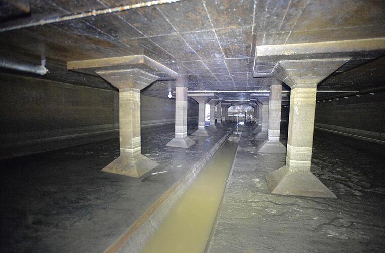 Es ist die unromantische Wahrheit, die im Dunkel unter der Erde fließt: Ein Teil des Bamberger Kanals, der durch den "Saal", ein 1000 Kubikmeterbecken, schwappt. Es gehört zum Kanalsystem, gebaut, um das Abwasser zwischenzuspeichern, wenn es plötzlich stark regnet. Der größte Speicher dieser Art fasst ganze 13.000 Kubikmeter und liegt unter dem Margaretendamm verborgen. Überhaupt ist von den 340 Kilometern öffentliches Kanalnetz in Bamberg nichts zu sehen.