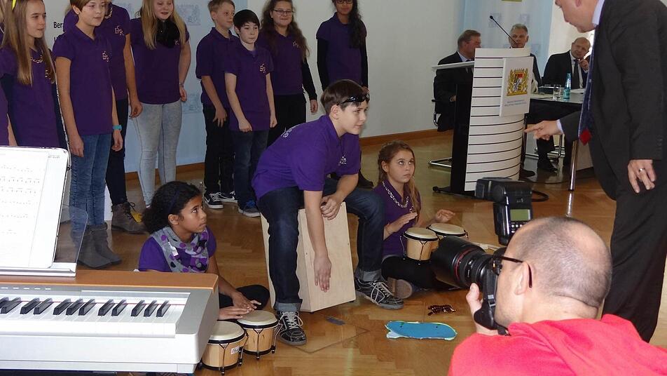 Dschungelmusik von der Eberner Chorklasse fegte durch die alten Gemäuer des Kultusministeriums. "Wir hatten keine Zeit, ganz spezielle Lieder für diese Feier einzustudieren", merkte Bernd Schmidt an. So packte er das Sommerprogramm aus: "The Lion sleeps tonight" und "Das Haus am See". Damit zog er die richtigen Register. Die Sechstklässler waren in Hochform.