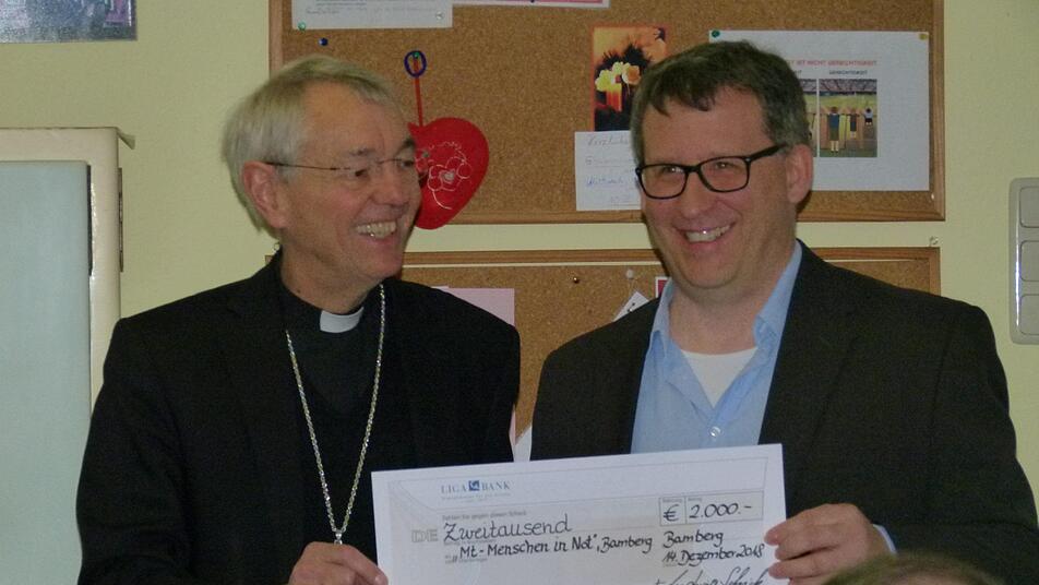 Dem Leiter des Treffpunkts "Menschen in Not", Peter Klein, übergab der Erzbischof einen Scheck über 2000 Euro - ein willkommener Beitrag zur Sorge um Menschen, "die von Armut und Obdachlosigkeit bedroht sind", wie Peter Klein sagte.