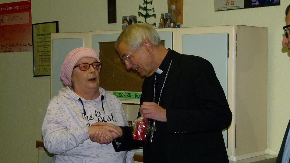 Erzbischof Ludwig Schick besuchte den Treffpunkt "Menschen in Not", überreichte eine Spende und Geschenke - und bekam selbst wertvolle Tipps.