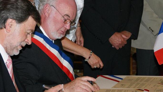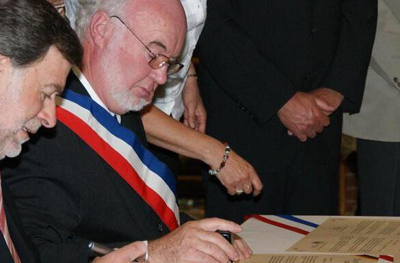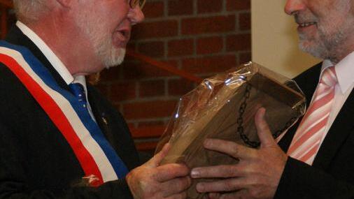 Feierlich verlasen die beiden Bürgermeister vor der offiziellen Besiegelung der Partnerschaft die Urkunden in Französisch und Deutsch.