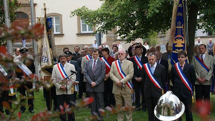 Der zweite Festtagt begann mit einer Kranzniederlegung der Kilstetter Delegation am Denkmal für die im Krieg gefallenen Zapfendorfer. "Der Weltkrieg war für Niemanden ein Sieg, sondern nur ein Sieg des Narzissmus", sagte Gabriel Muller. "Für mich ist der Krieg erst mit dem Fall der Mauer zu Ende gegangen. Wunden bekommen Narben - und diese verheilen.