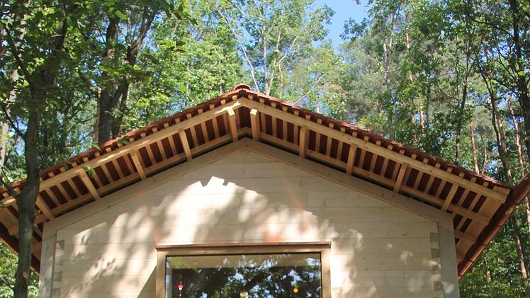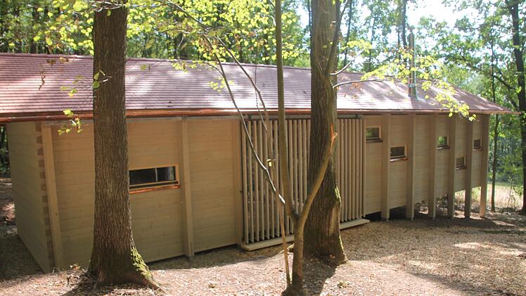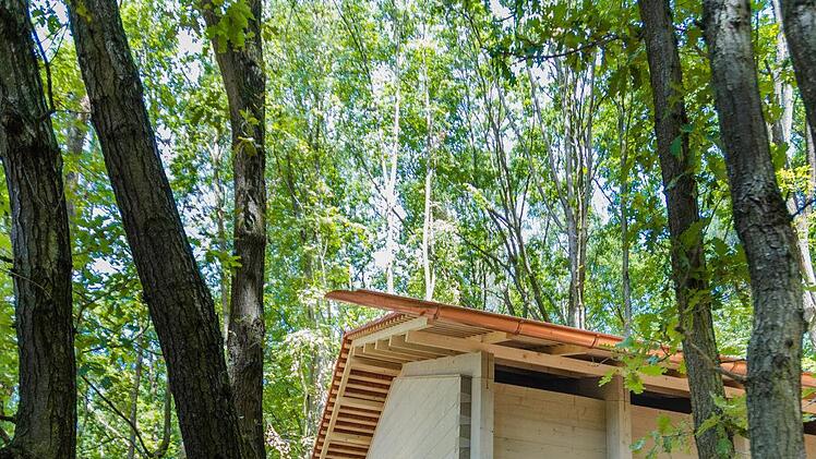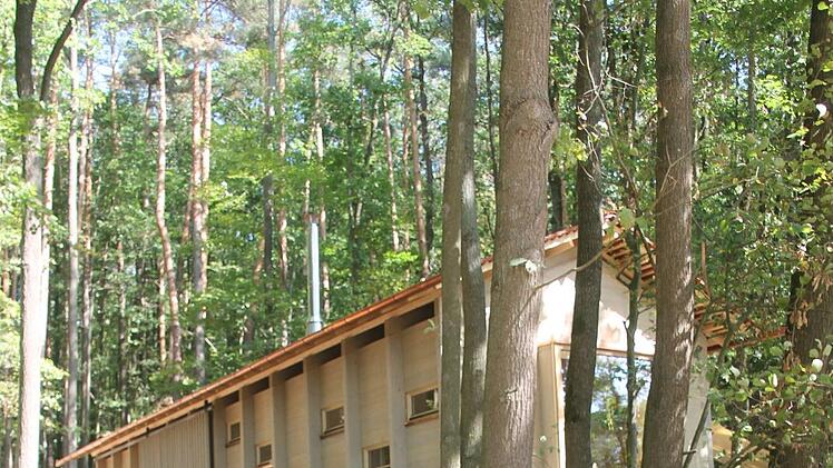 Gegen die größten Wetterübel hilft auch im Wald von Zapfendorf ein kleines Holzhaus. Das wurde von den Bamberger Architekten Schmitt.Vogels durchdacht und aus Nadelholz errichtet, das man dem heimischen Waldbestand entnahm. Die Architekten planten und errichteten dank hervorragender Handwerkerleistungen aus der Region in einem knappen Dreivierteljahr ein über dem Waldboden schwebendes Holzhaus, das die Forderung nach Nachhaltigkeit für zeitgenössische Architektur ganz nebenbei erfüllt.
