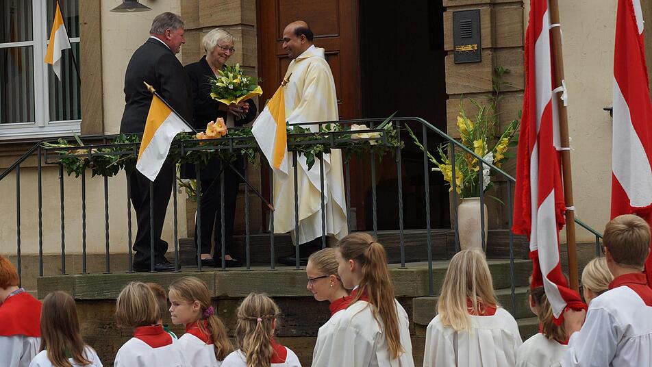 Pfarrer Kurian Chackupurackal erhielt anschließend symbolisch die Schlüssel der Kirchengemeinde und wurde auch von den Kirchenverwaltungen sowie den Pfarrgemeinderäten aus Zapfendorf und Kirchschletten begrüßt.
