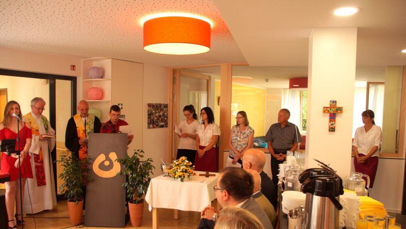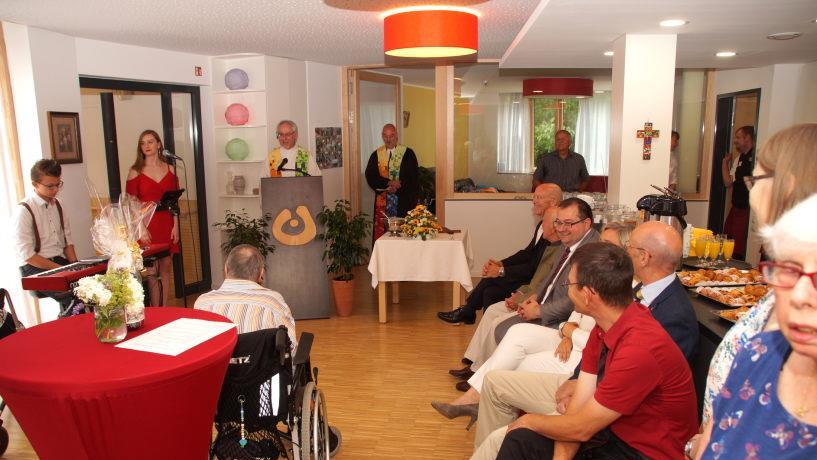 Klaus Gallenz, Vorsitzender der Lebenshilfe Bamberg, begrüßte zur Einweihung die Gäste und sagte: "Wir bauten hier ein Haus, in dem man sich wohlfühlt. Die gute Einbindung unserer Bewohner in die Gemeinde Memmelsdorf wollten wir wieder aufleben lassen." Diese Einbindung, mit dem aktuellen Fachbegriff der "Sozialraum-orientierung" in aller Munde, sei dem Personal und den Bewohnern bereits gelungen und werde auch künftig weiter forciert. Gallenz dankte auch Geschäftsführer Günther Hofmann, dem Aufsichtsratsvorsitzenden der Lebenshilfe-Werkstätten, und dem Chef der Mediengruppe Oberfranken, Walter Schweinsberg, Aufsichtsratsvorsitzendem Hans Müller, Marie Luise Straßberger, Günther Kolb als Vorsitzendem des Fördervereins "Hand in Hand", dem Architekten Markus Hirt und den anwesenden Politikern.