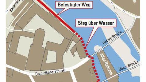 Der Förderverein zur Nachhaltigkeit der Landesgartenschau möchte den Leinritt in Bamberg umgestalten - und wünscht sich unter anderem eine Stegkonstruktion bis zur Oberen Brücke.